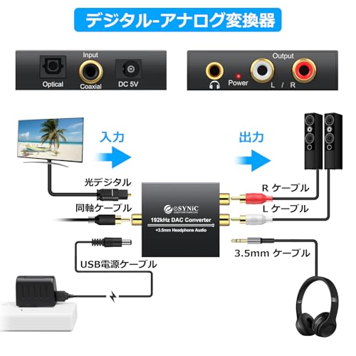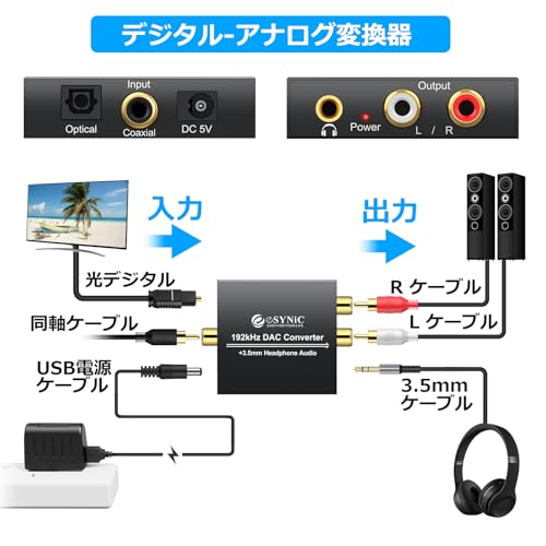 同軸ケーブルのinputも付いていますので(めったにないでしょうけれど)、同軸→アナログの変換も可能?(試す環境がないので試していないため疑問符です)。