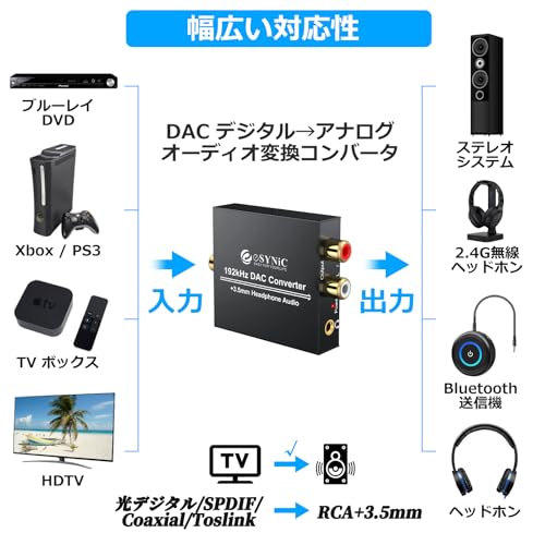 同軸ケーブルのinputも付いていますので(めったにないでしょうけれど)、同軸→アナログの変換も可能?(試す環境がないので試していないため疑問符です)。