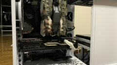CPUファンを光らせても面白いんじゃないかと夫がいうので、試しに手持ちしてたFractal Designの12㎝ファンを入れてみたんですけど、14cmファンが入ることを想定して作られたヒートシンクなので間抜け!